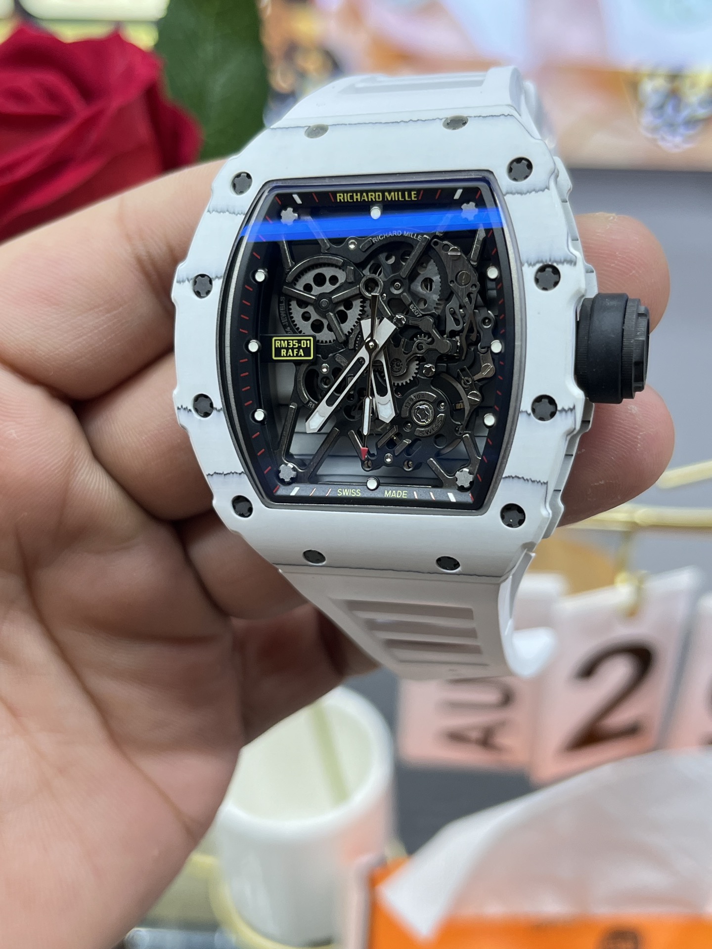 Best Replica RICHARD MILLE RM 35-01 White Carbon Skeleton Dial Watch – Super Clone Quality
